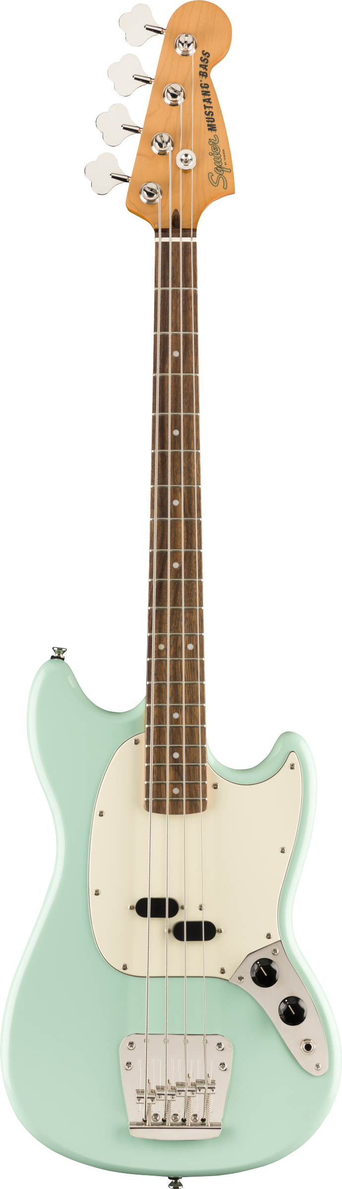 Apesar do tamanho compacto, o baixo Classic Vibe '60s Mustang® oferece um timbre incrível graças ao captador split-coil alnico projetado pela Fender. Quem tem mãos pequenas vai adorar a escala curta de 30" e o perfil fino e confortável do braço em formato "C", com raio de 9,5" e trastes estreitos e altos. Este modelo retrô da Squier também apresenta marcações no headstock inspiradas nos anos 60, ferragens niqueladas de alta qualidade e um acabamento brilhante vintage no braço, para um visual clássico.