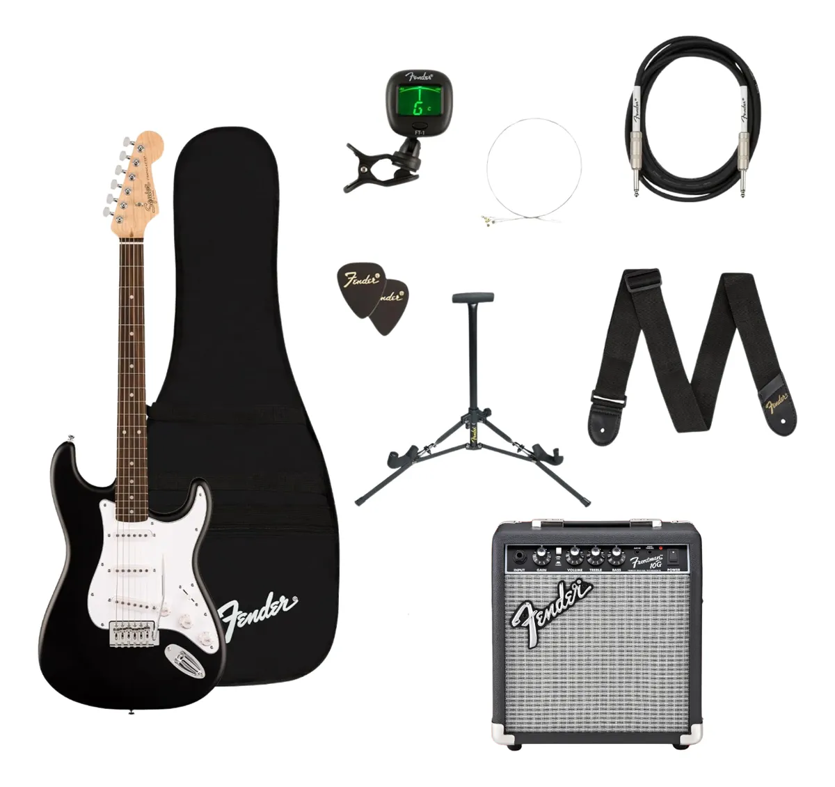Tudo o que você precisa para começar a arrasar assim que tirar da caixa.1 Guitarra Fender Squier Debut Series Stratocaster Black