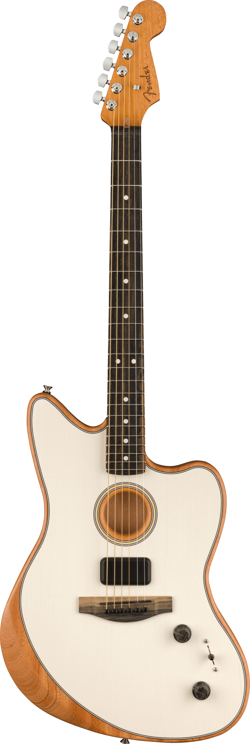 - Três sistemas de captação: novo Fender Acoustasonic Shawbucker; transdutor Fishman Under-Saddle; Fishman Acoustasonic Enhancer.