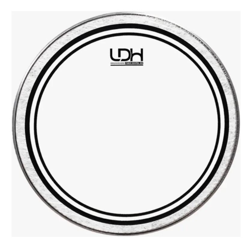Pele Duplo Filme Clear, produzida com dois filmes transparentes, sendo um de 7 mil e outro de 5 mil de espessura com tecnologia da LUEN, onde recebe uma camada fina de fibra natural que controla a vibração da borda resultando em graves mais profundos, ataque mais preciso, maior controle de sustain e um timbre mais rico e definido.