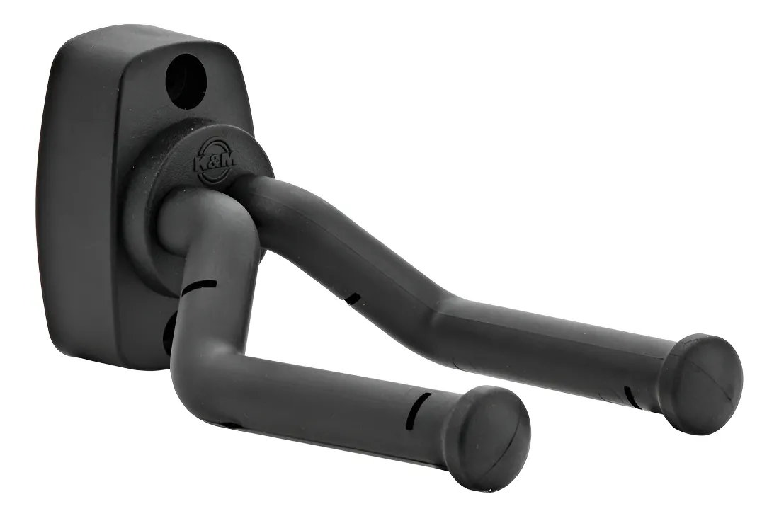 O suporte de parede para guitarra da K&M é um suporte de parede do tipo aparafusado que acomoda uma ampla variedade de formatos de guitarra, tornando-o adequado para uso em uma exibição de guitarra no varejo ou para músicos com uma grande coleção de guitarras.
